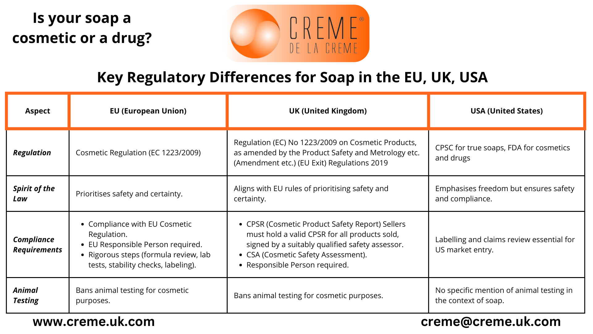 Soap must comply with the Cosmetics Regulation (EC 1223/2009).